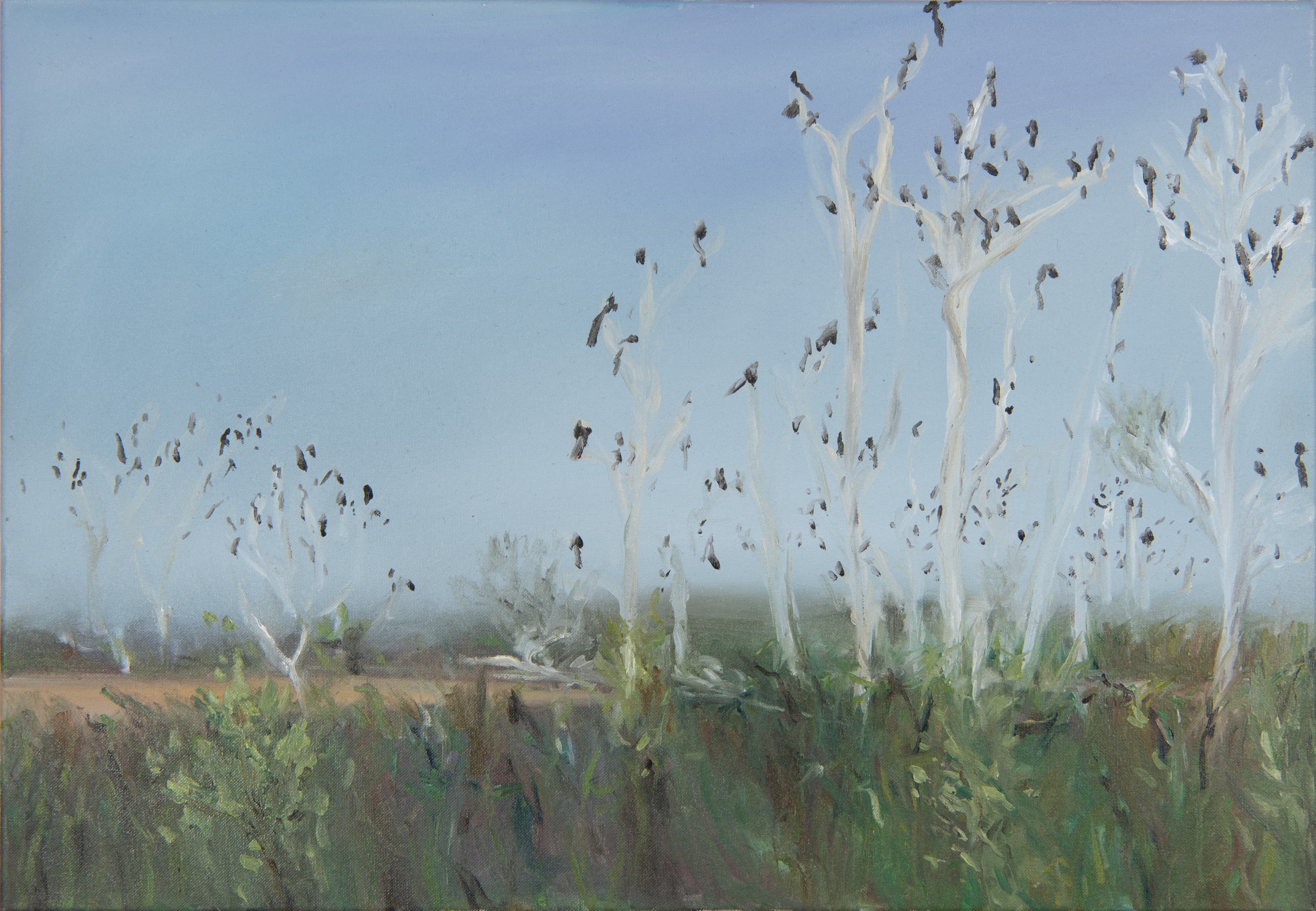 Zoë Mauritz (*1997) und Merle Biesel (*1998) lernten sich 2017 während der Studienvorbereitung an der Alanus Hochschule für Kunst und Gesellschaft kennen. Zoë Mauritz studierte später Malerei an der Kunsthochschule Weissensee, Merle Biesel freie Kunst an der Kunstakademie Münster. In der Arbeit von beiden kristallisierte sich schnell ein Interesse an Natur- und Landschaftsdarstellungen heraus: Formen, Strukturen, Muster, die in Landschaften eine Rolle spielen und die Beziehung zwischen Mensch und Raum hinterfragen. Dabei geht es sowohl um einen persönlichen Blick auf Natur als auch um die universelle Beziehung der Menschen zu ihr. Das aufmerksame Beobachten ermöglicht es, sich mit der Umgebung zu verbinden und sie zu übersetzen, in Form von Zeichnung oder Malerei. Naturdefinition und -wahrnehmung sind in ihren Augen in Zeiten der Klima- und Biodiversitätskrise aktueller denn je.